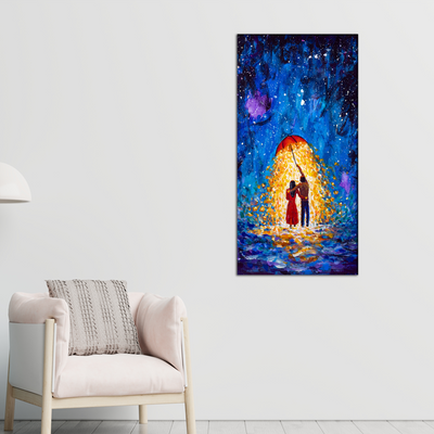 Boat & Girl Artistic Night Scenery Canvas Wall Painting