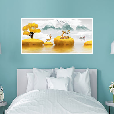 DecorGlance Posters, Prints, & Visual Artwork CANVAS PRINT WHITE FLOATING FRAME / (48x24) Inch / (121x60) Cm White Deer In Night Canvas Floating frame Wall Painting