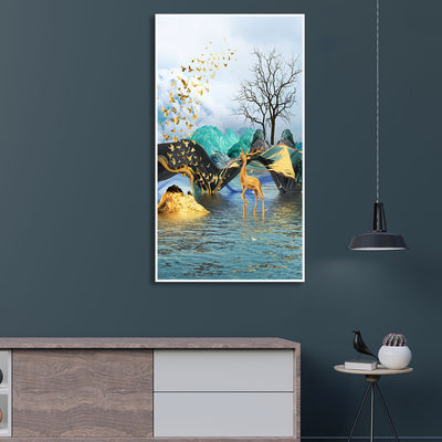 Deer Illustrations Canvas Floating Frame Wall Painting