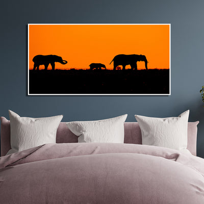 Family Of Elephant Canvas Floating Frame Wall Painting