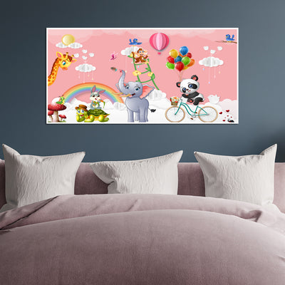 Animal's Cartoon Canvas Floating Frame Wall Painting