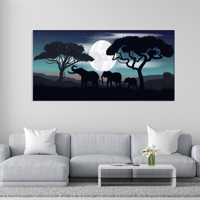 Family of Elephants In Night Canvas Wall Painting
