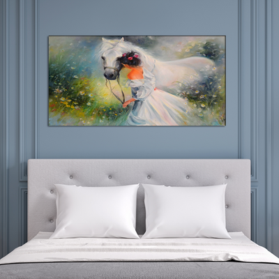 Oil Color Couple Horse Canvas Wall Painting