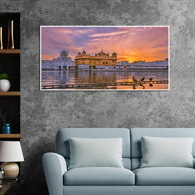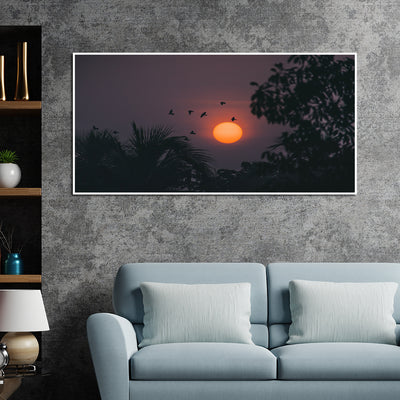 DecorGlance CANVAS PRINT WHITE FLOATING FRAME / (48 X 24) Inch / (121 X 60) Cm Sunset View Canvas Floating Frame Wall Painting
