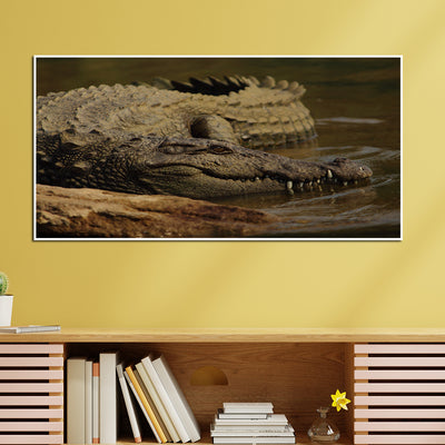 Crocodile In Water Canvas Floating Frame Wall Painting