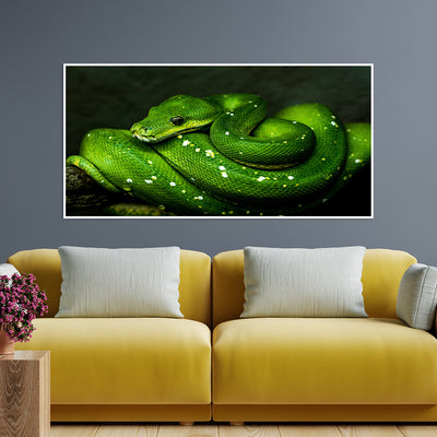Green Cobra Snake Floating Frame Canvas Wall Painting