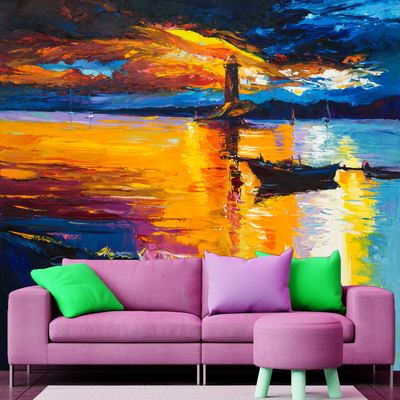 Lighthouse & Boats Abstract Digitally Printed Wallpaper