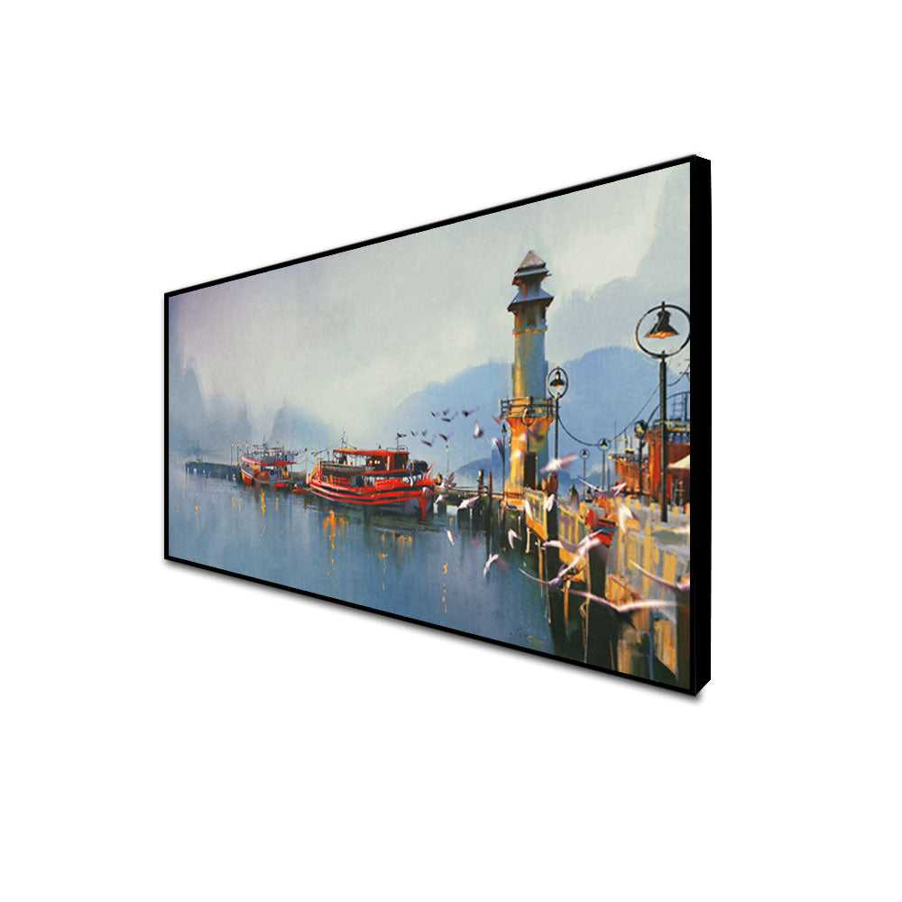 Fishing Boats In Harbor Canvas Floating Frame Wall Painting
