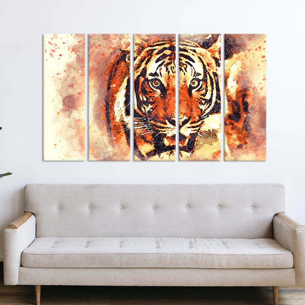 Abstract Tiger Face Canvas Wall Painting - With 5 Panel