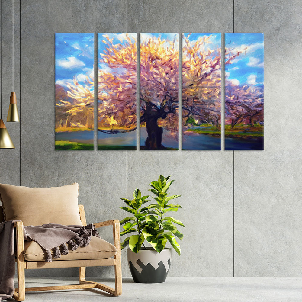 Abstract Colorful Rainbow Tree Canvas Wall Painting - With 5 Panel