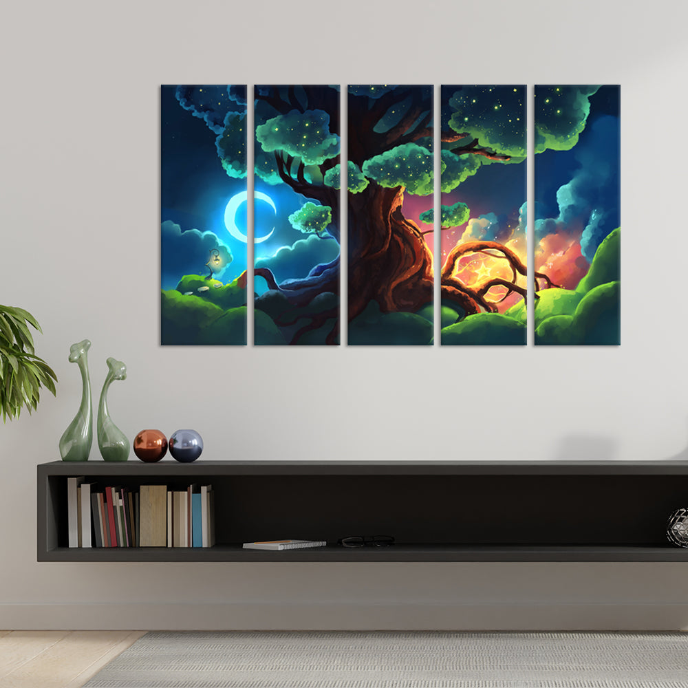 Illustration Tree Canvas Wall Painting - With 5 Panel