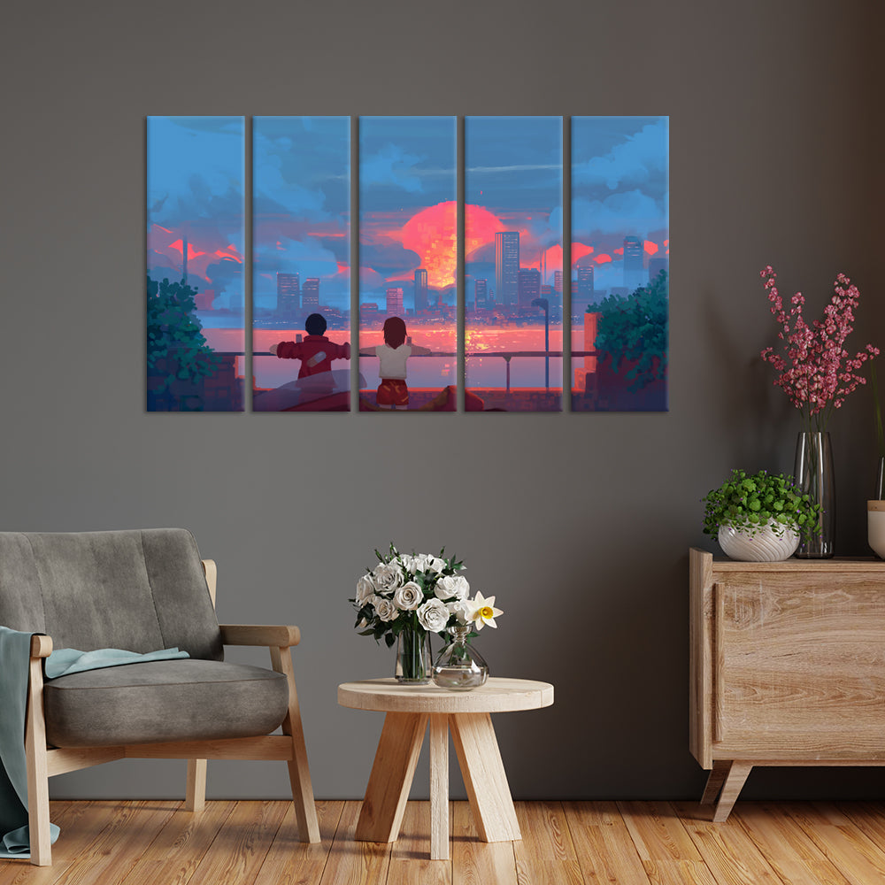 Couple Illustration Canvas Wall Painting - With 5 Panel
