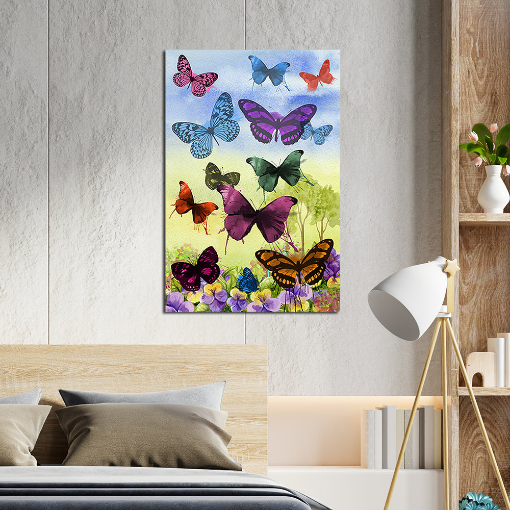Abstract Painting of Butterflies on Flowers Canvas Wall Painting