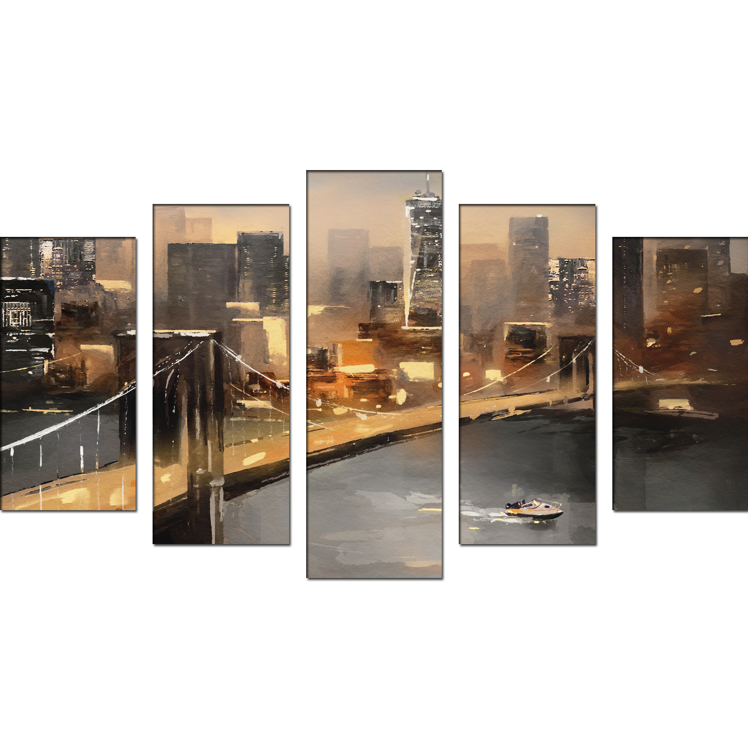 New York City Bridge Canvas Wall Painting- With 5 Frames