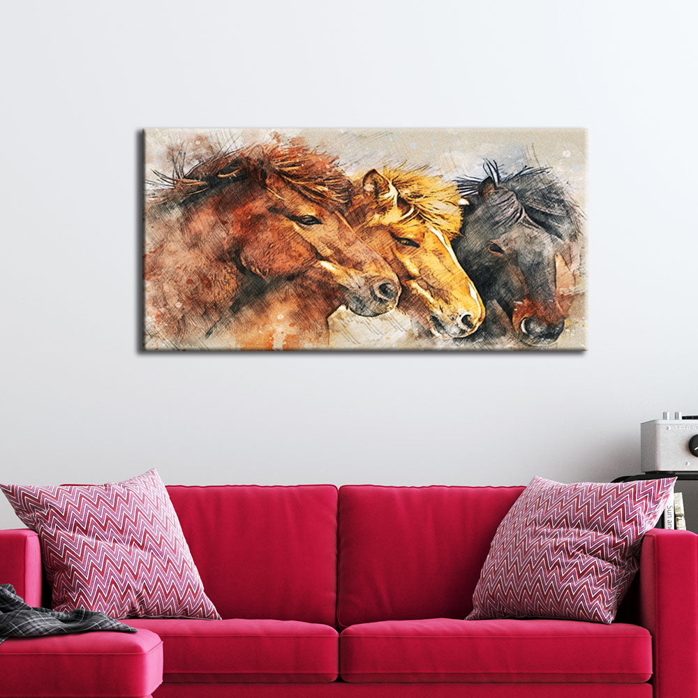 Colorful Three Horses Canvas Wall Painting