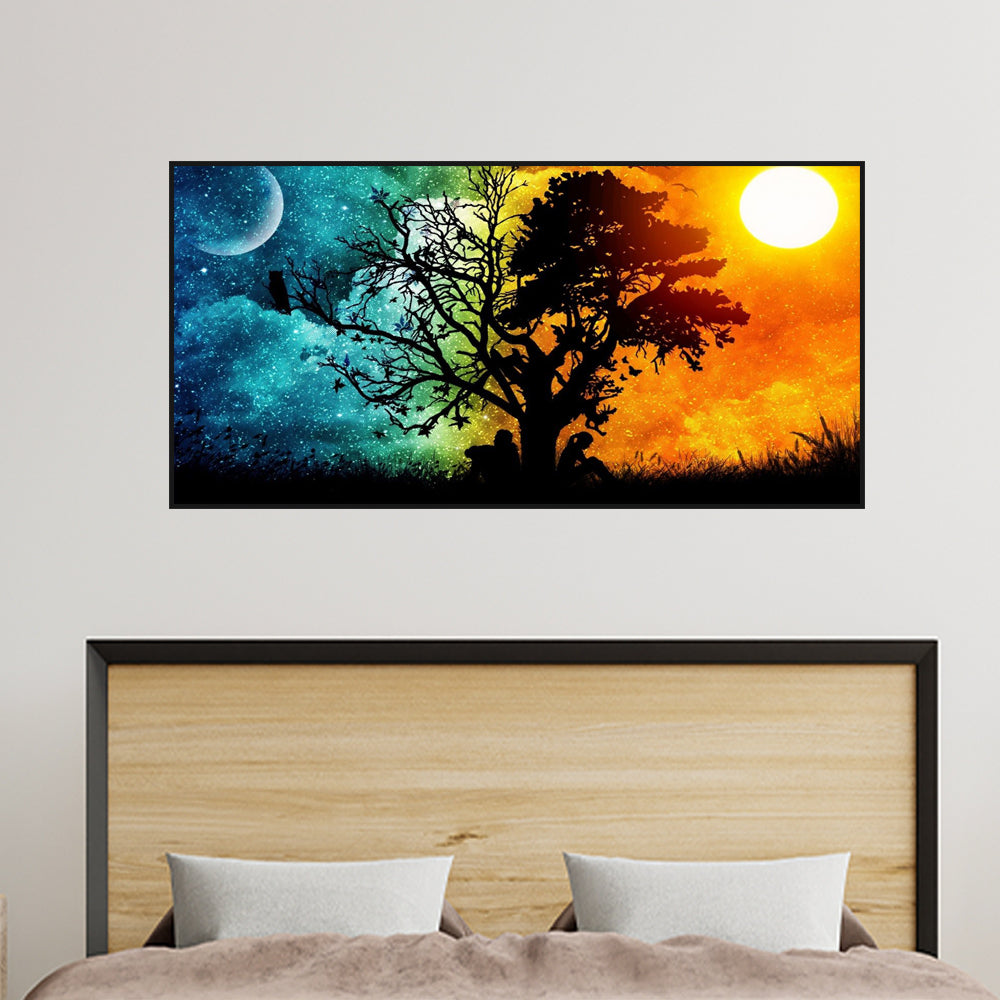 Day & Night Tree Scenery Canvas Floating Frame Wall Painting