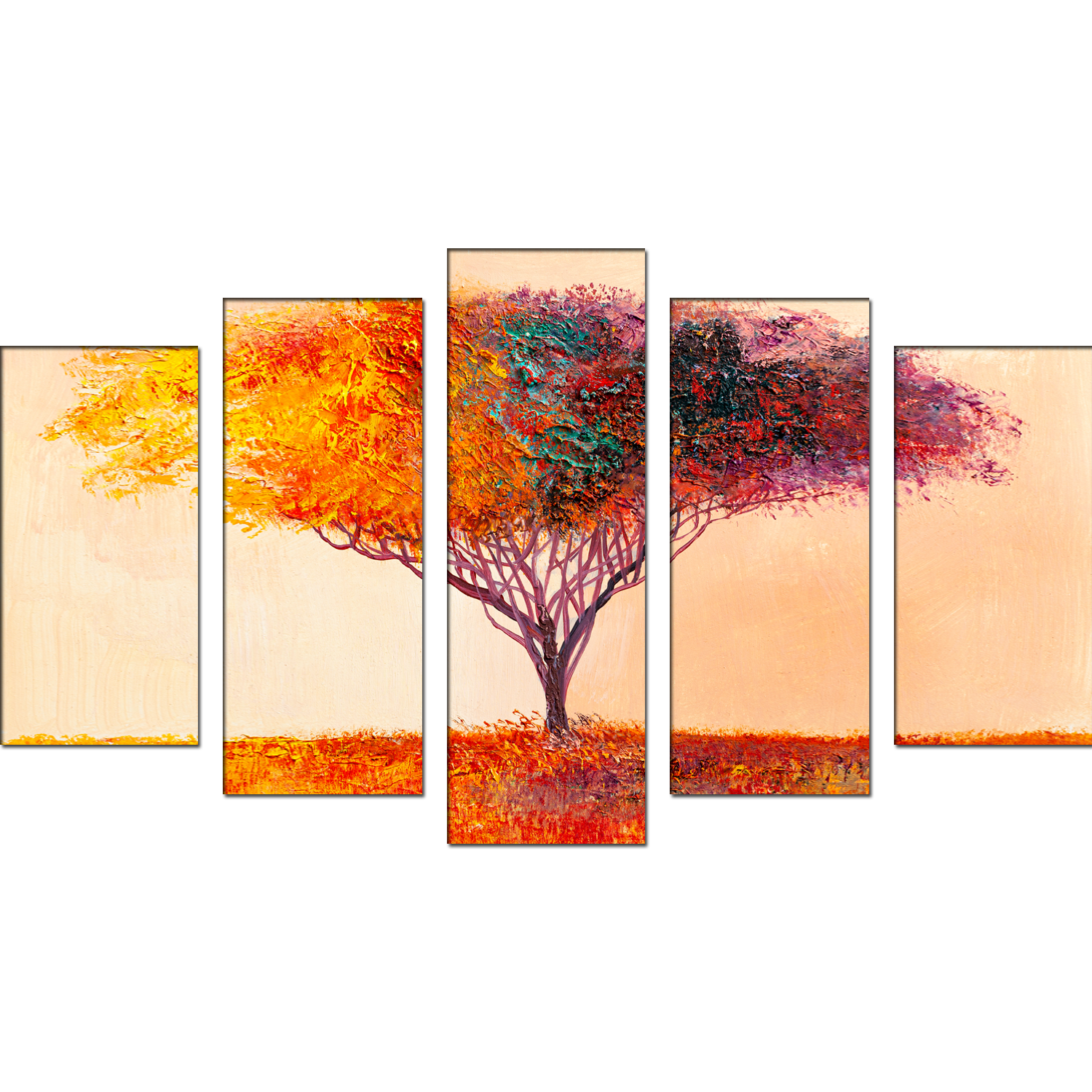 Colorful Tree Canvas Wall Painting- With 5 Frames