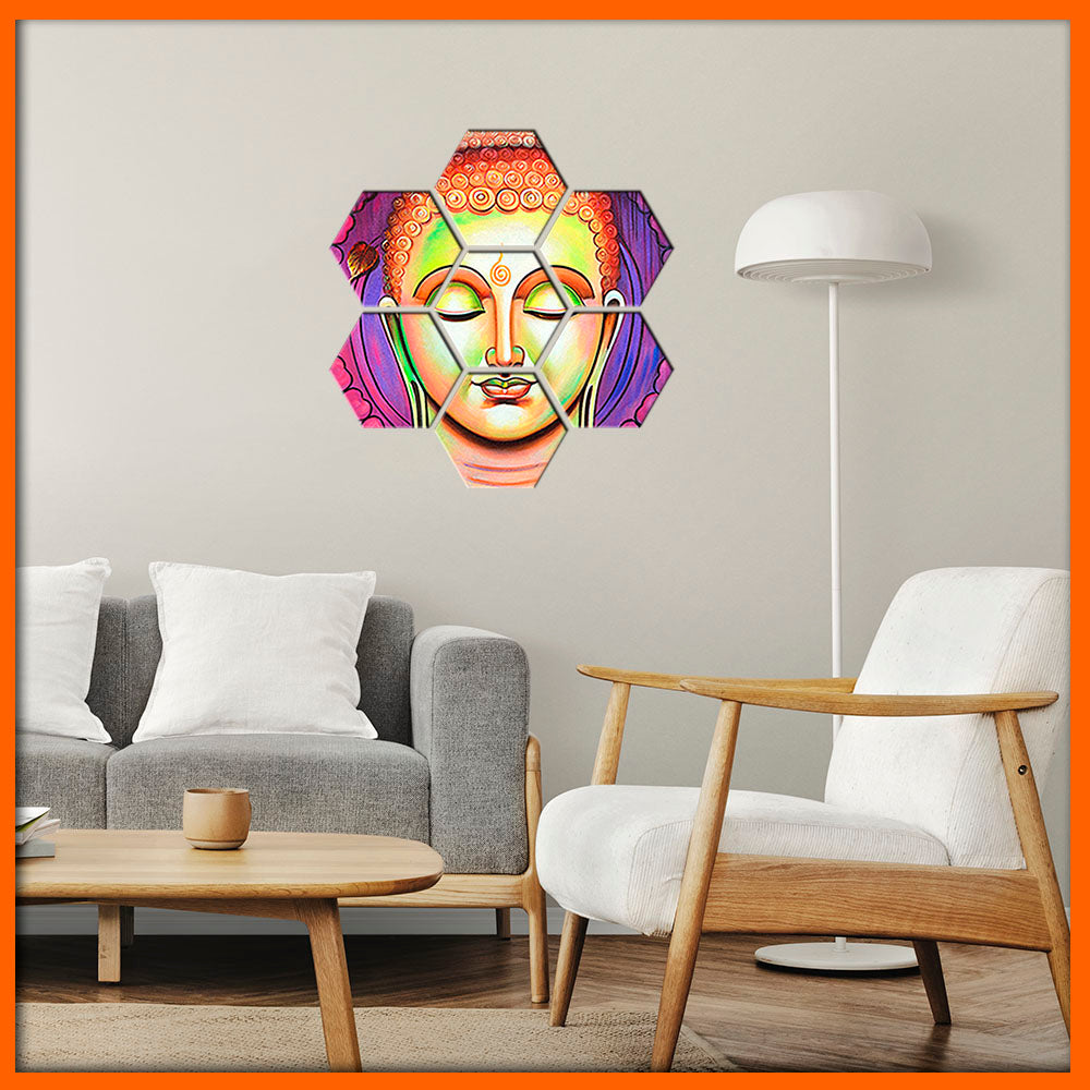 Acrylic Color Portrait Buddha Hexagonal Canvas Wall Painting - 7pcs
