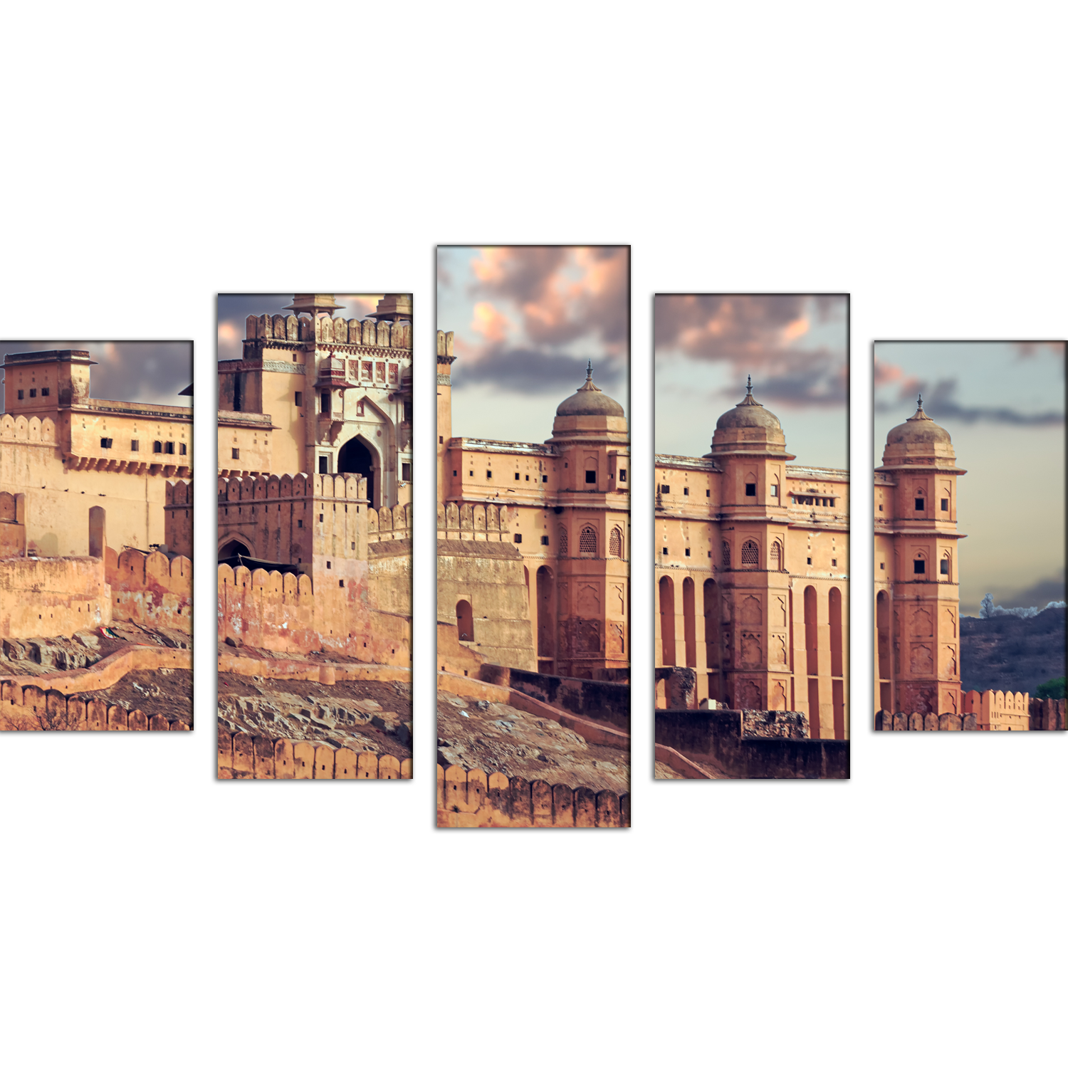 Amer fort Abstract Canvas Wall Painting- With 5 Frames