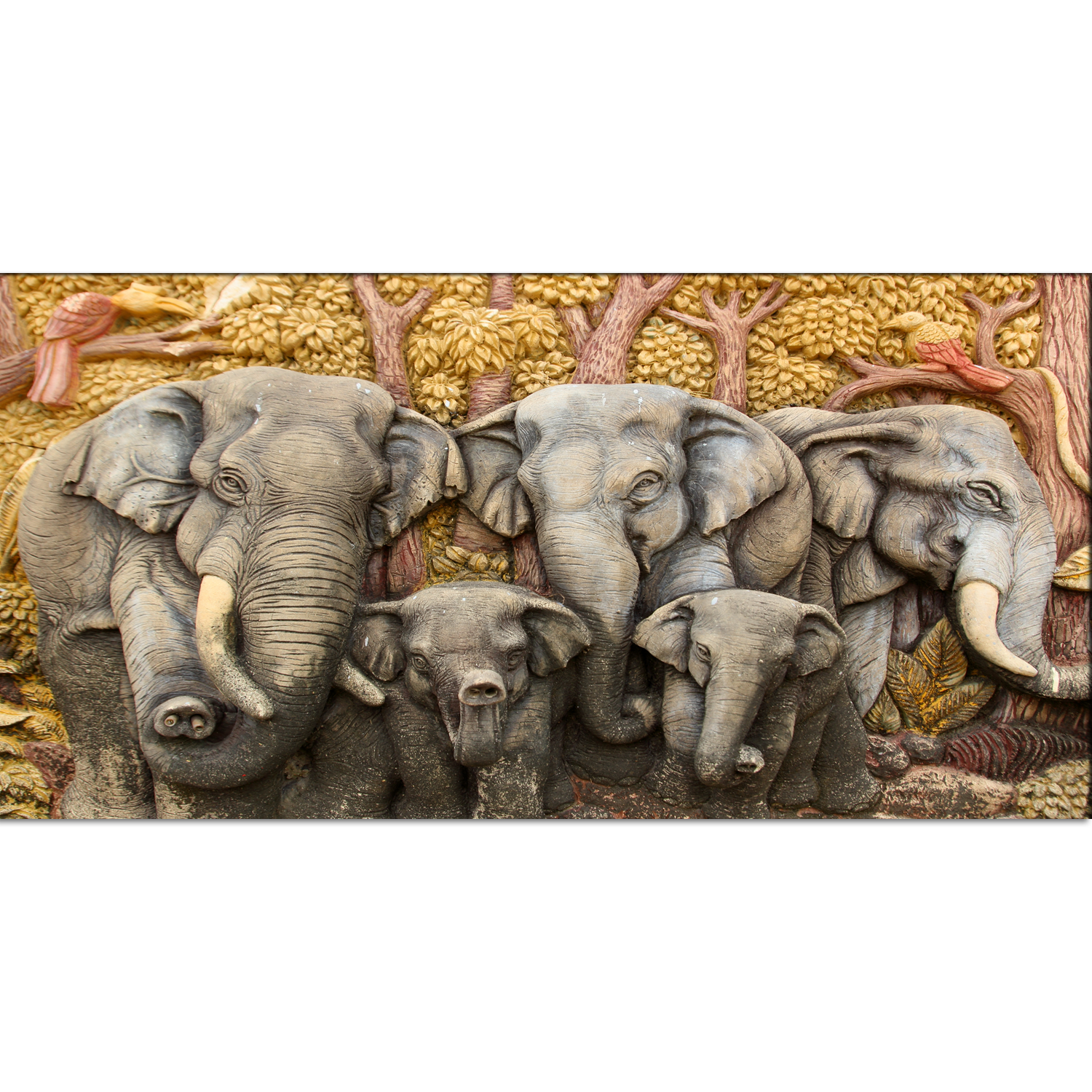 Elephant With Family Print On Canvas Wall Painting