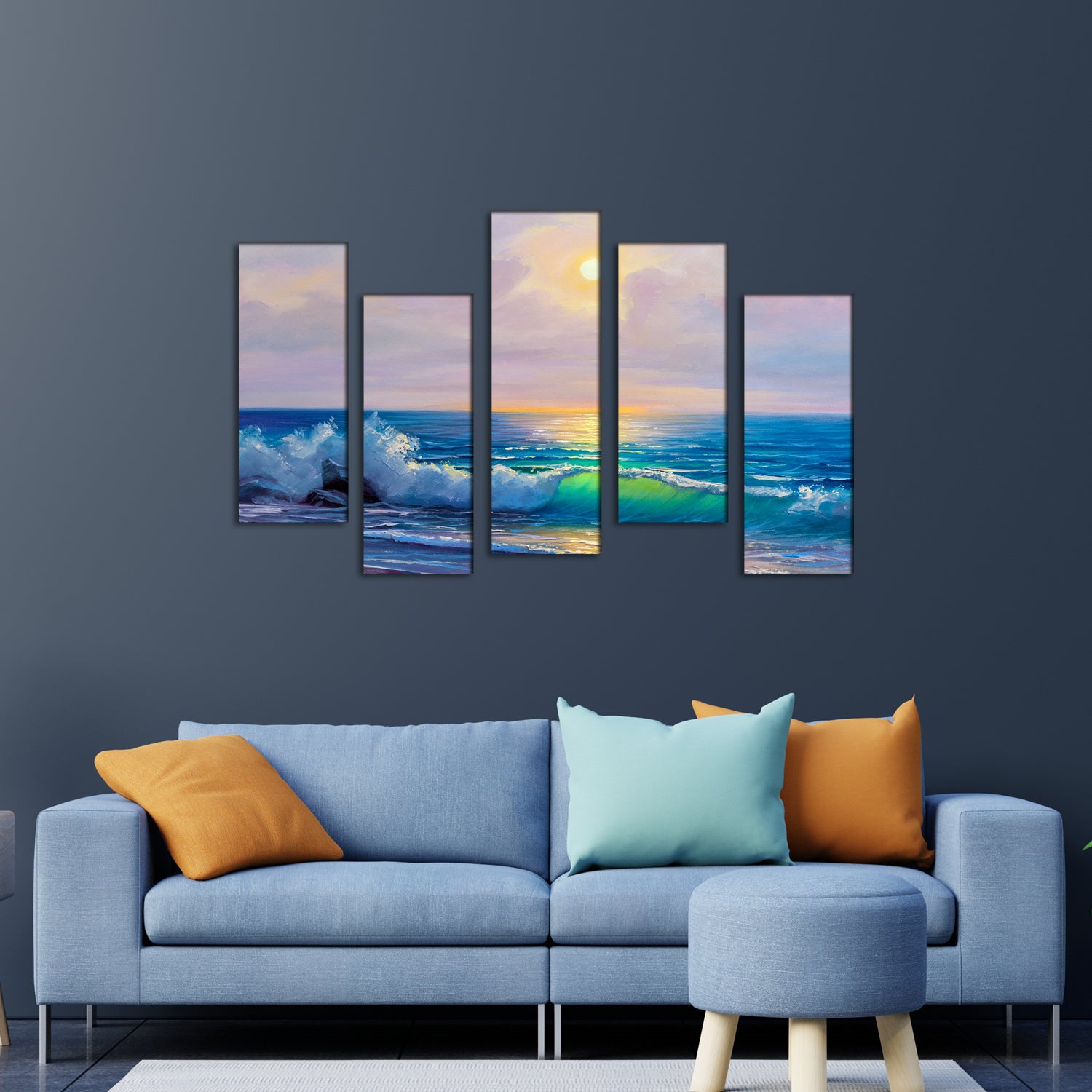 Attractive Sea Canvas Panel Wall Painting - With 5 Frames
