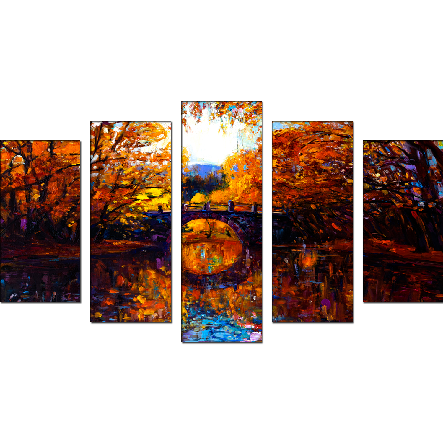 Autumn Forest Abstract Scenery Canvas Wall Painting- With 5 Frames