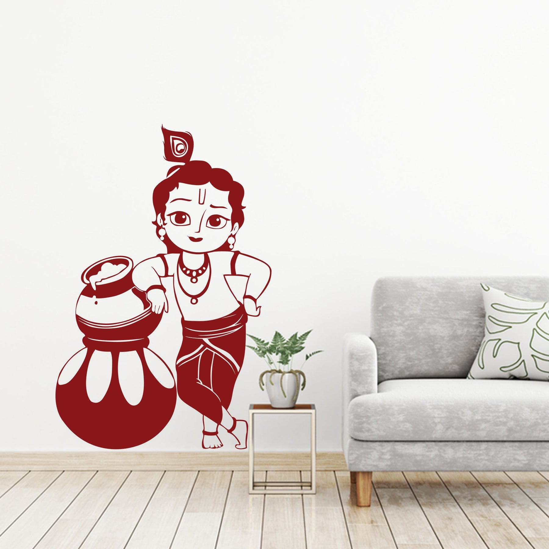 Bal Krishna Premium Quality Wall Sticker in Brown Color