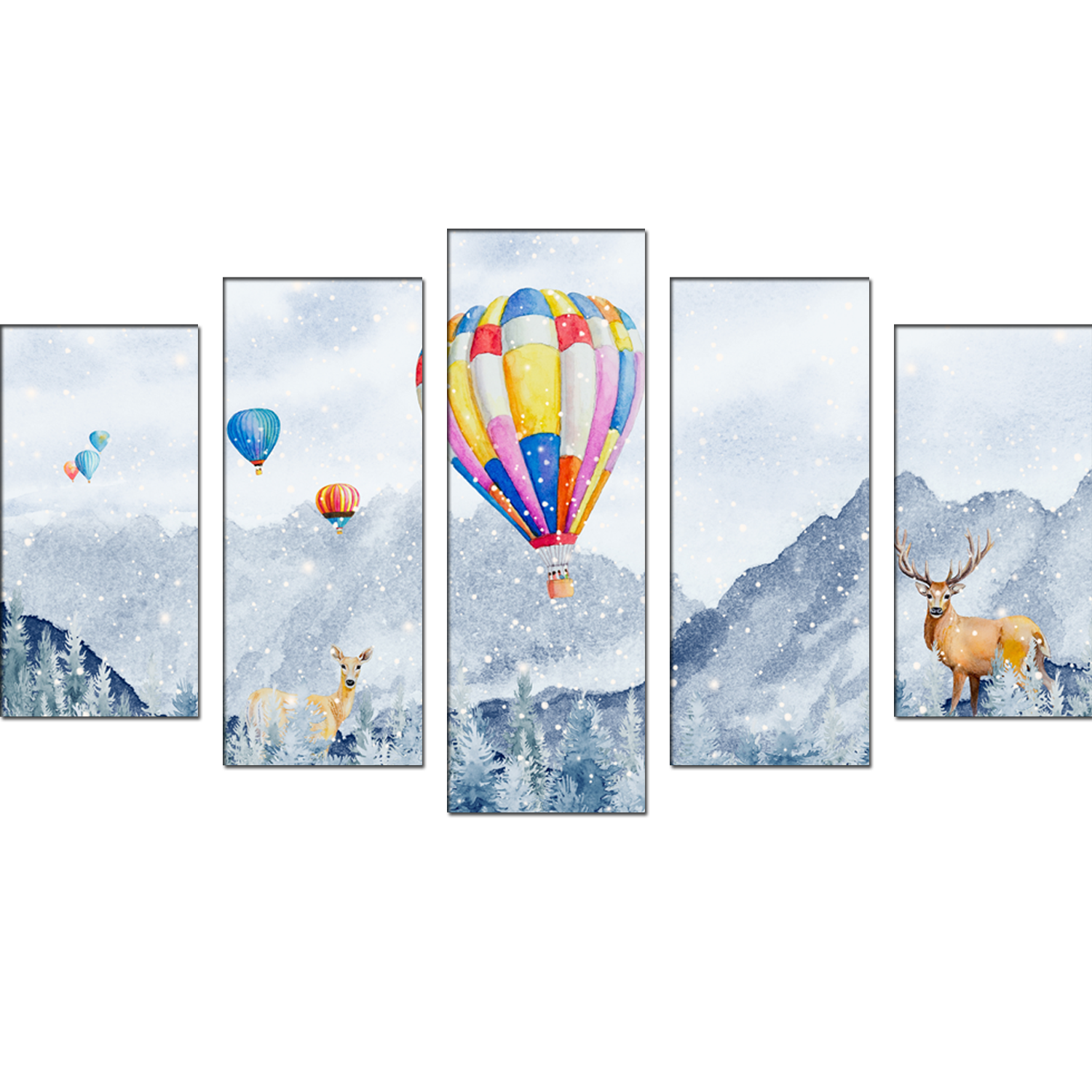 Hot Air Balloon And Deer Canvas Wall Painting- With 5 Frames