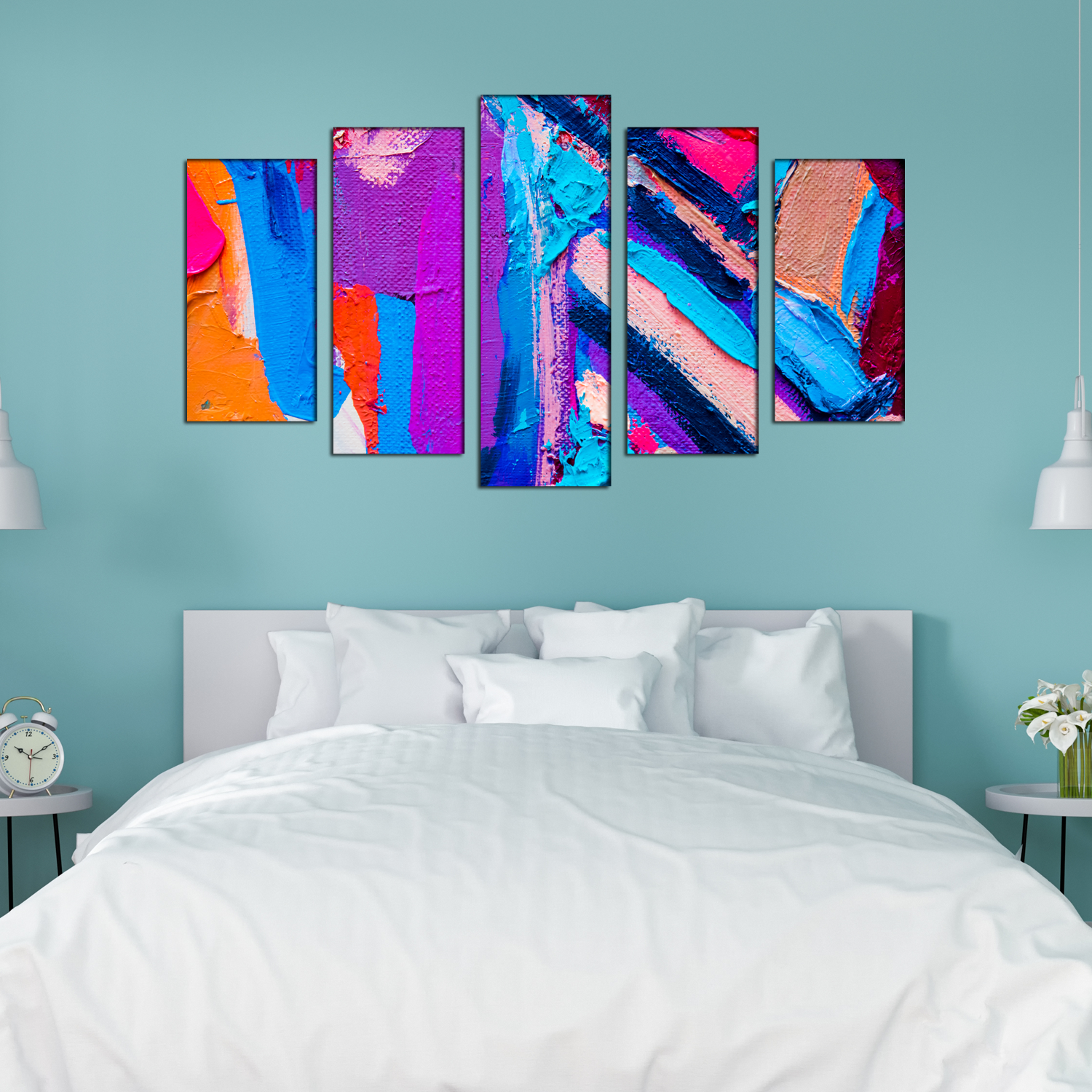 Colourful Abstract Canvas Panel Wall Painting - With 5 Frames