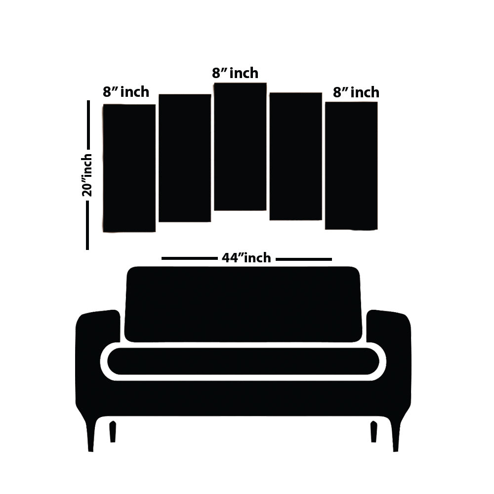 • Total coverage area: 44" W x 24" H. (24" H x 8" W x 5 panels)