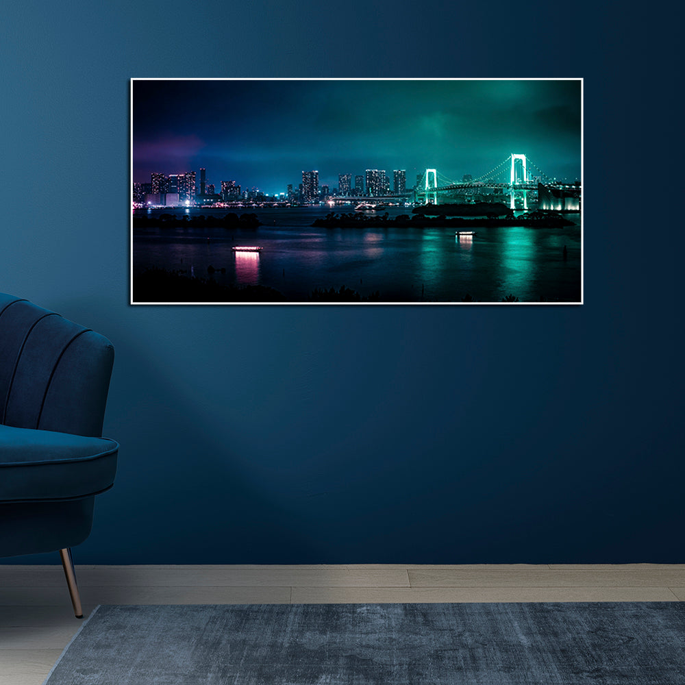 Colourful City View In Night Canvas Floating Frame Wall Painting
