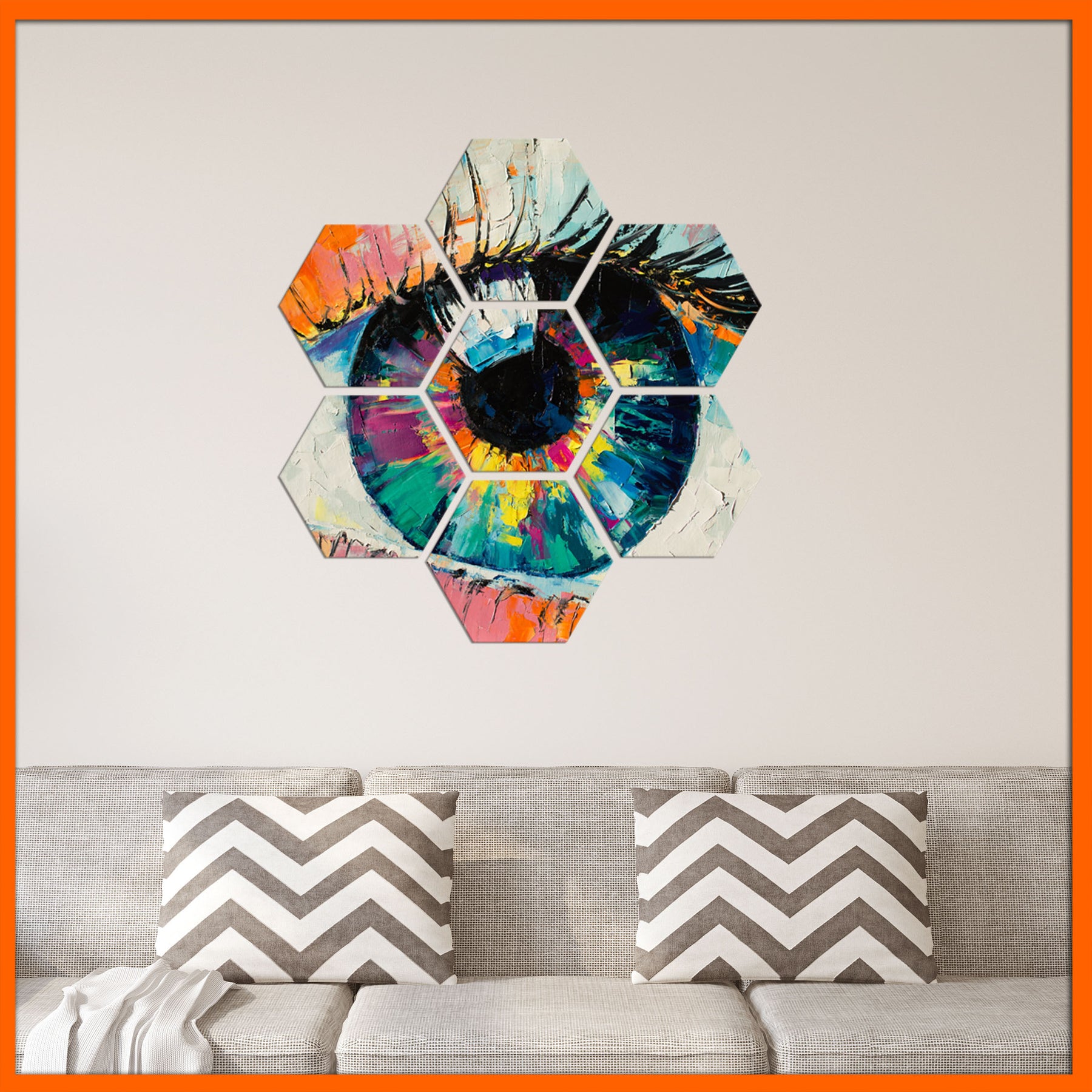 This beautiful eye abstract design honeycomb wall art home décor is a high-definition design printed on an artist’s canvas. This modern abstract art is excellent if you are looking forward to giving your bedroom, living room, dining area, or office a modern and aesthetic look. Frames on a solid wooden canvas, this set of 7 hexagonal pieces are to be placed strategically on the wall to form another tremendous hexagonal masterpiece. You can also gift this abstract modern wall art to your friends or family on a happy occasion. Hanging this painting on the walls will add a unique charm to your space.