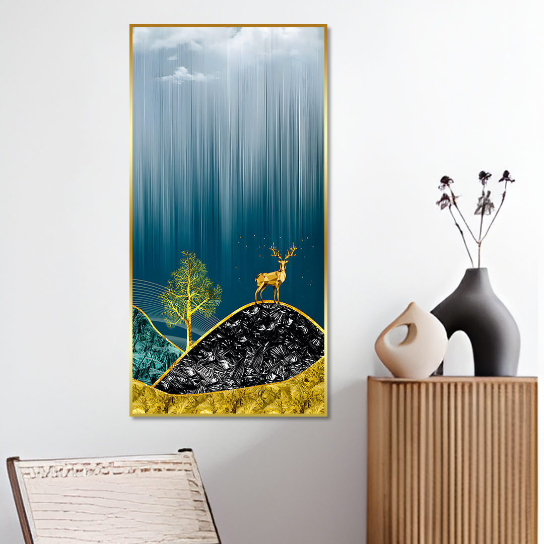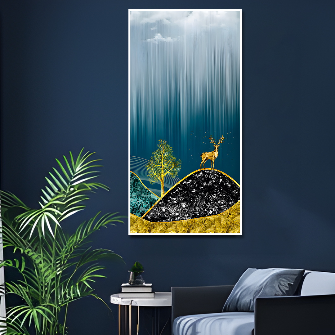 Beautiful Golden Mountains and Deer with Moon Canvas Floating Frame Wall Painting is a symbol of peace & prosperity. Fall in love with this beautiful and designer wall painting as a part of your home decor. Available in three canvas colors, it is a perfect living room painting that can completely change the look of your home. It is mounted on a strong and robust wooden frame which is made of American Pine thereby making it resistant to bending at corners due to the constant pressure of hanging on the wall. These canvas wall art are printed in HD quality and also use Eco-friendly inks that leave no residue or fumes in the environment around where it is put.