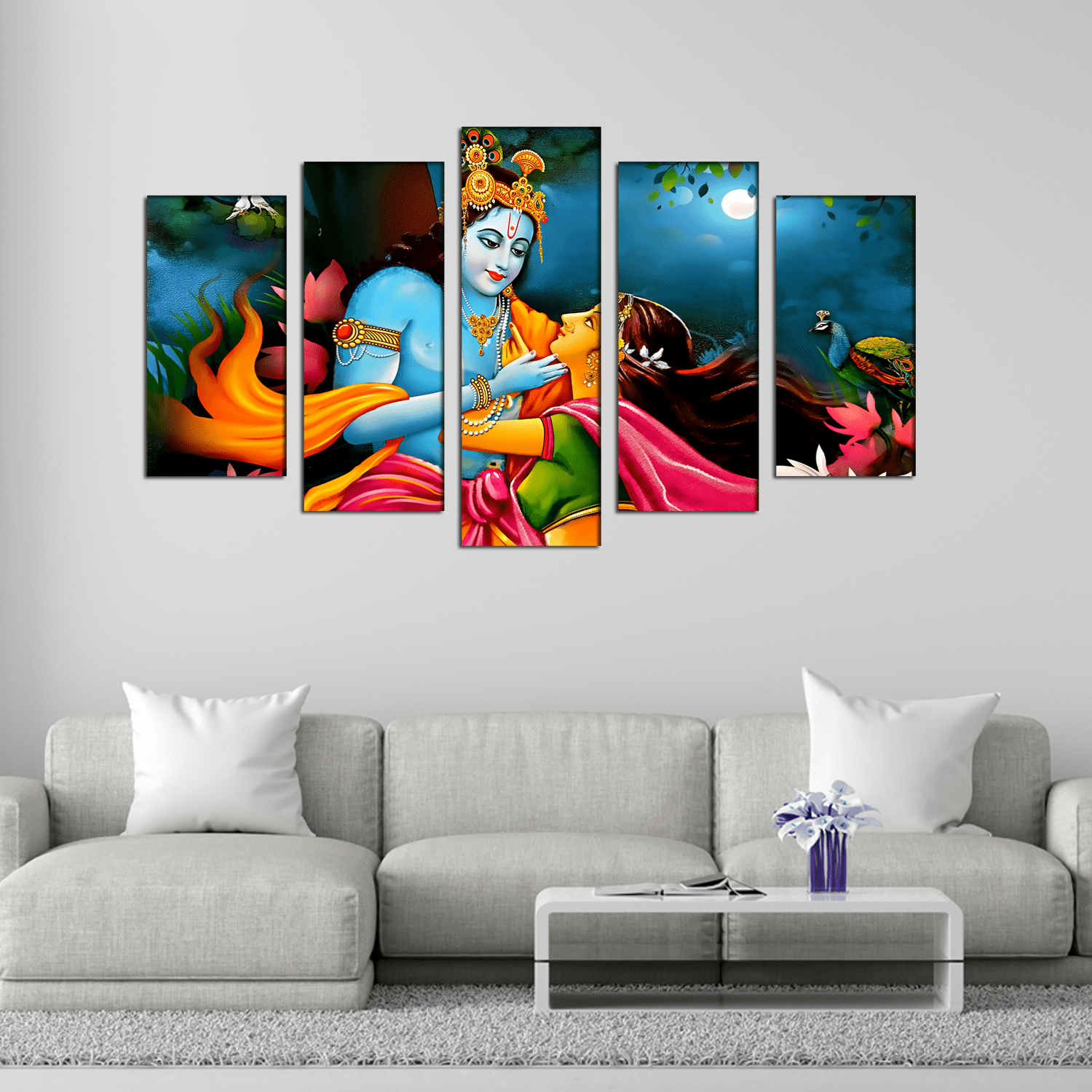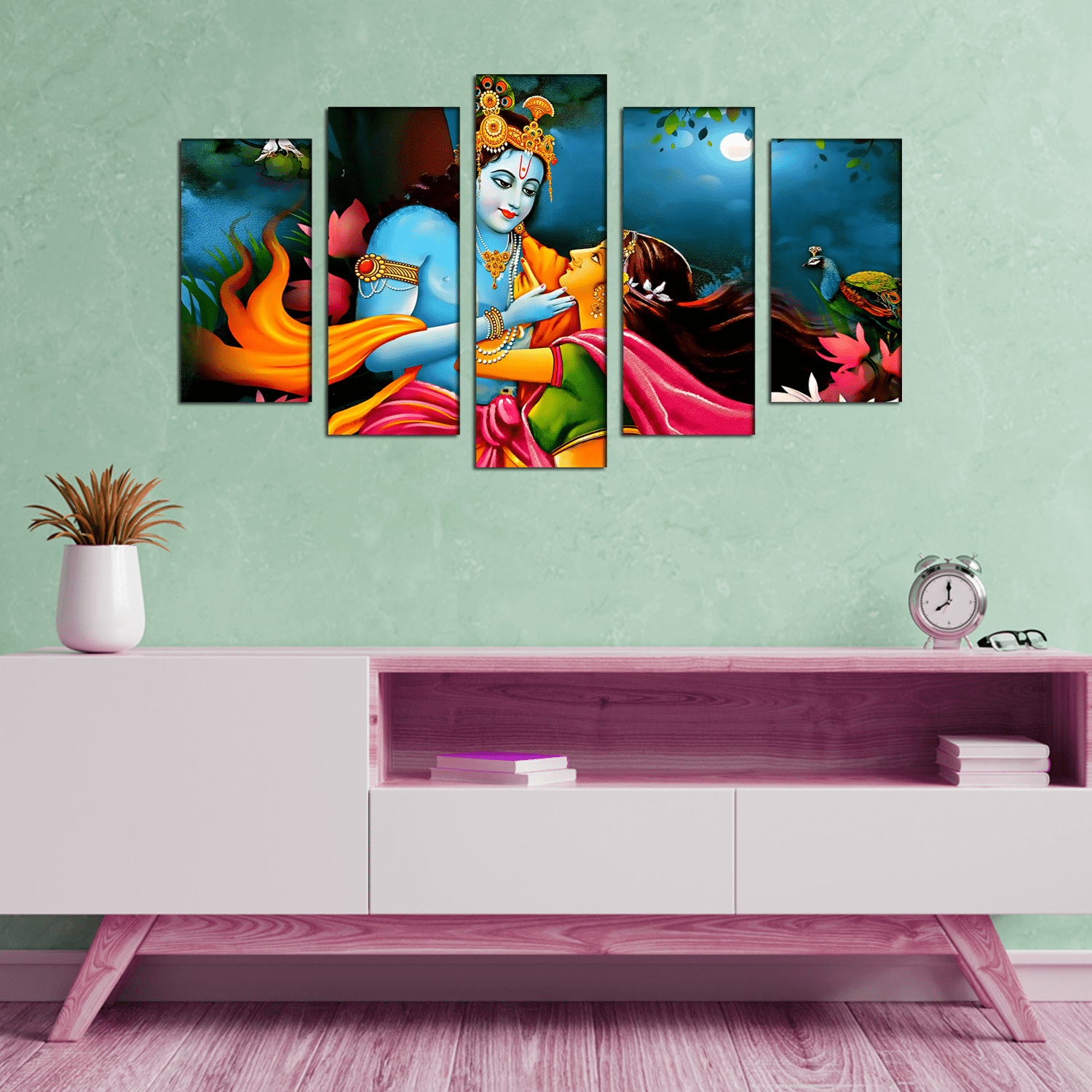 DECORGLANCE Panel painting Radha Krishna Raasleela View Canvas Wall Painting- With 5 Frames
