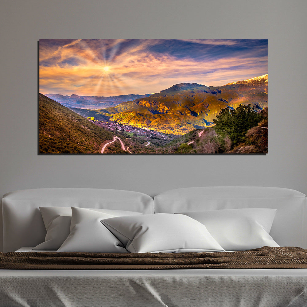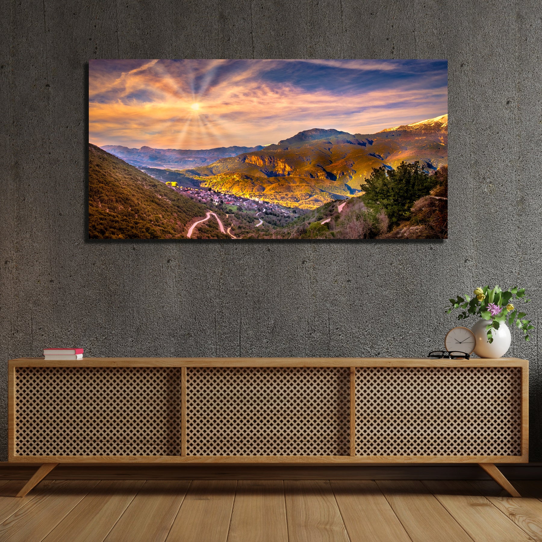 Beautiful Sunrise & Mountain View Canvas Wall Painting