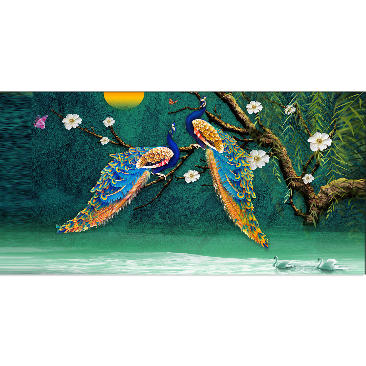 Beautiful Pair of Peacock Canvas Wall Painting