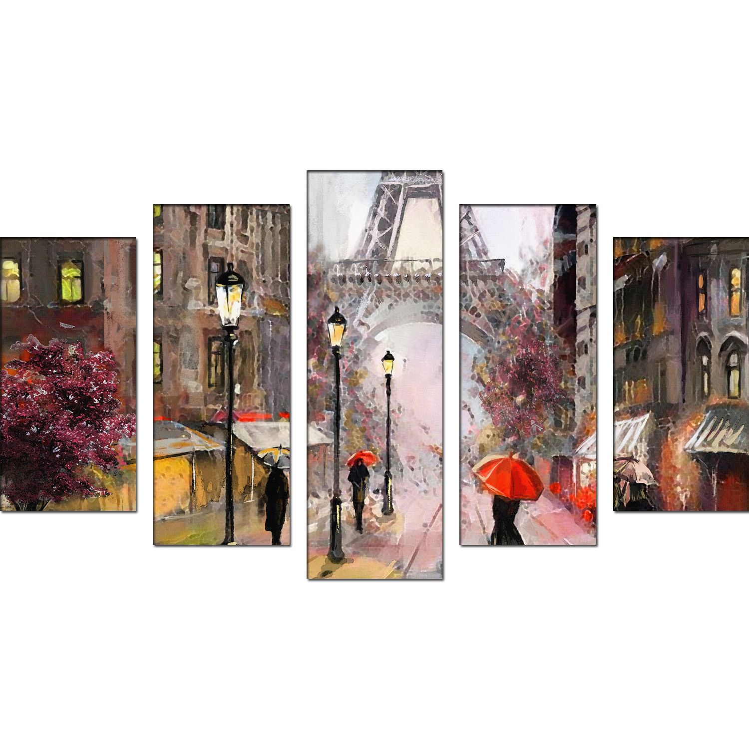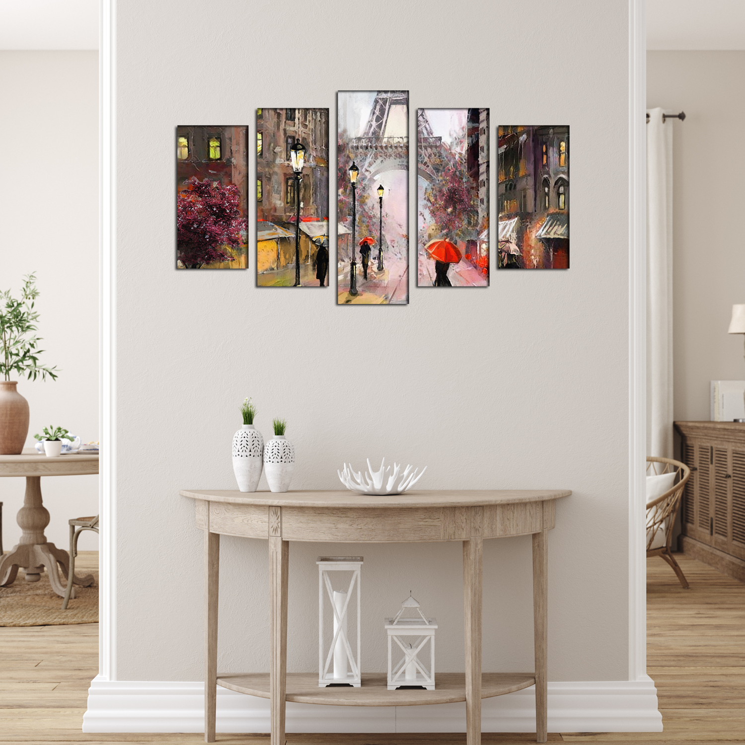 Artistic Color Eiffel Tower Scenery Canvas Panel Wall Painting - With 5 Frames
