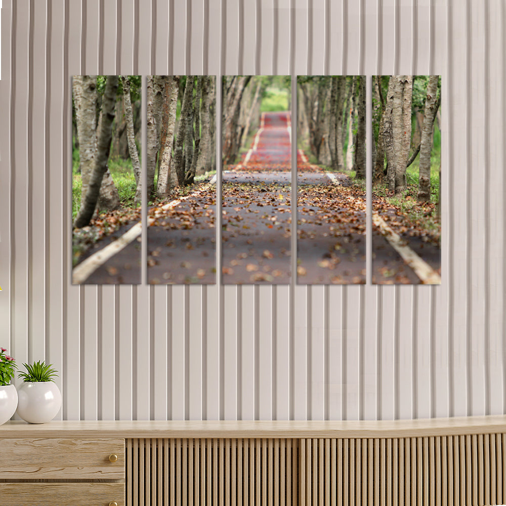 Autumn Road View Canvas Wall Painting - With 5 Panel