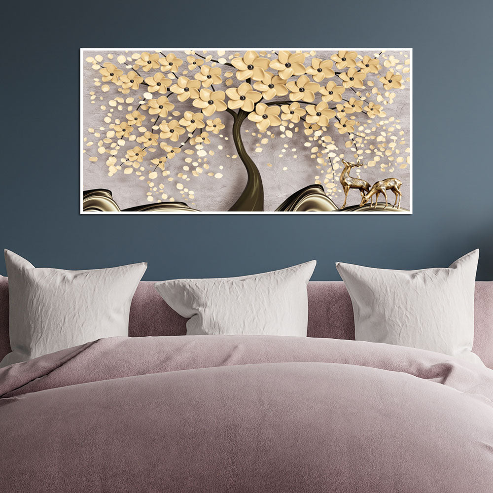 This matte finish 3D and embossed look golden painting is all set to add spark to your plain walls. Canvas painting are always a good and viable option of home décor as it looks royal. Decorate your dining area, living rooms and bedrooms with this golden flower floating canvas painting to add charm to your lives like the blooming flowers. This wall painting suits all kinds of wall color themes so, you just don’t need to do any wall upgrades except hanging this master art form on wall. Complete the look of your walls with this Islamic golden painting.