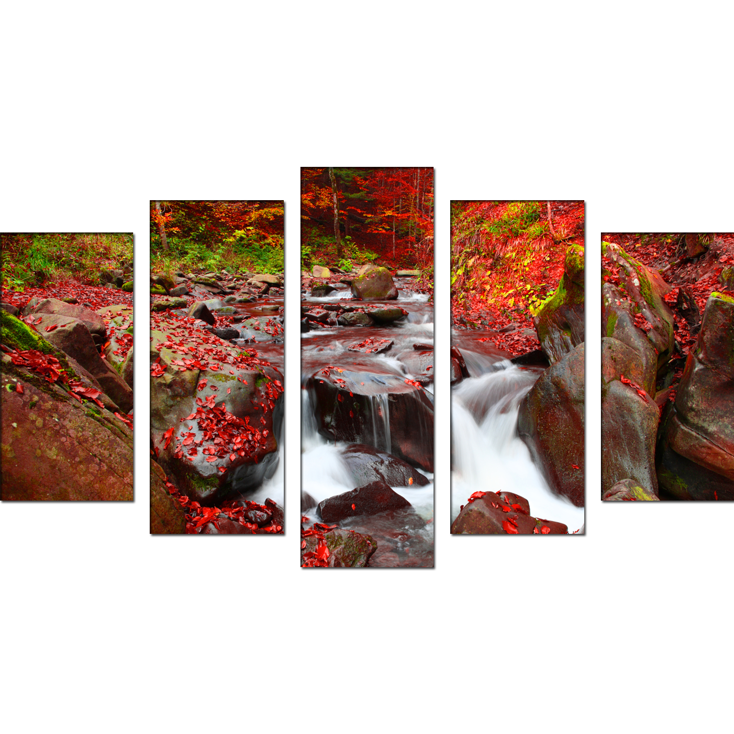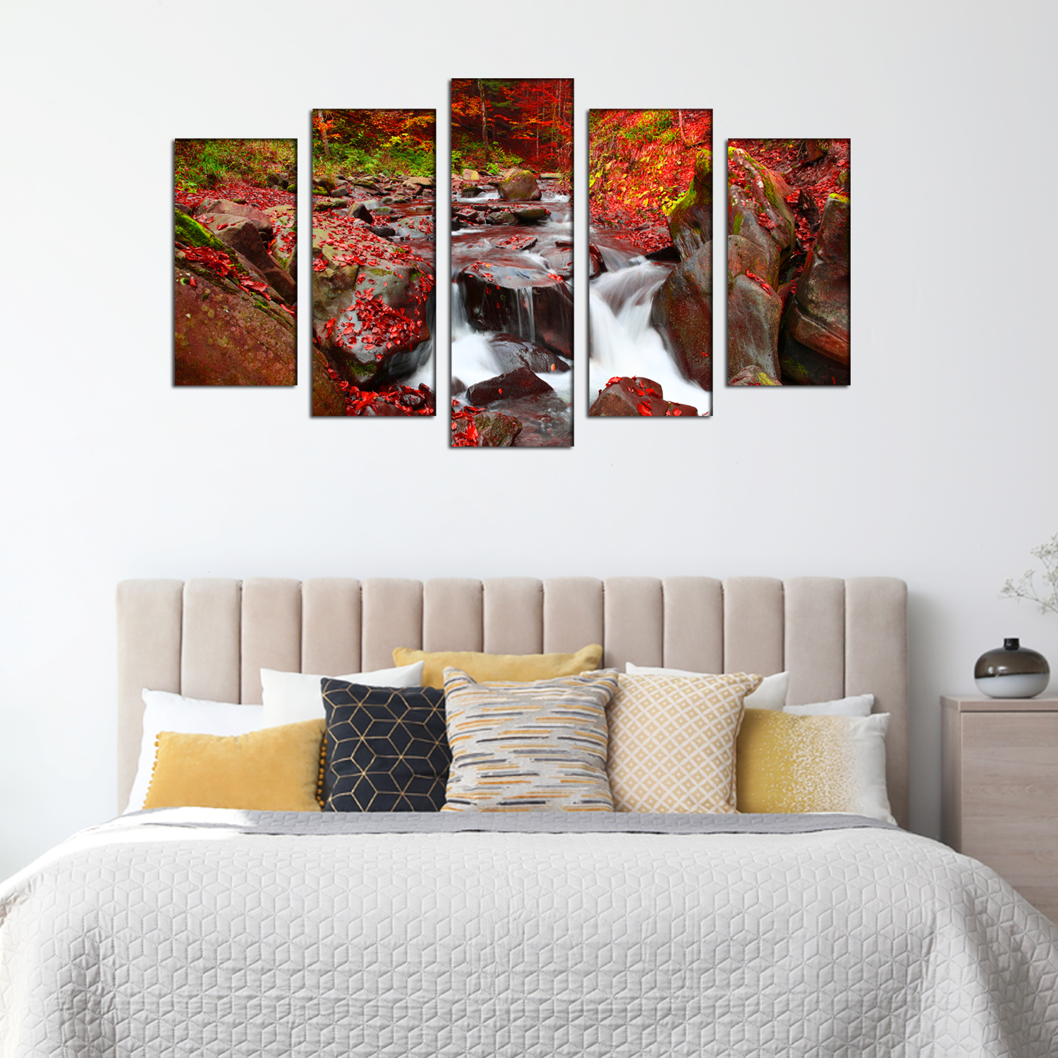Autumn Waterfall Scenery Canvas Wall Painting- With 5 Frames