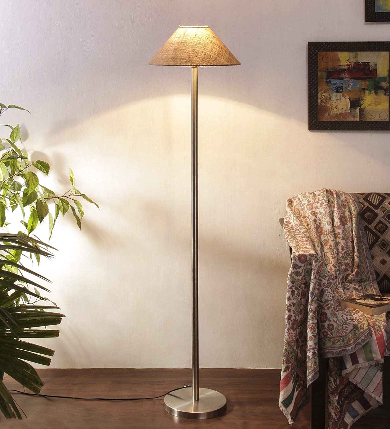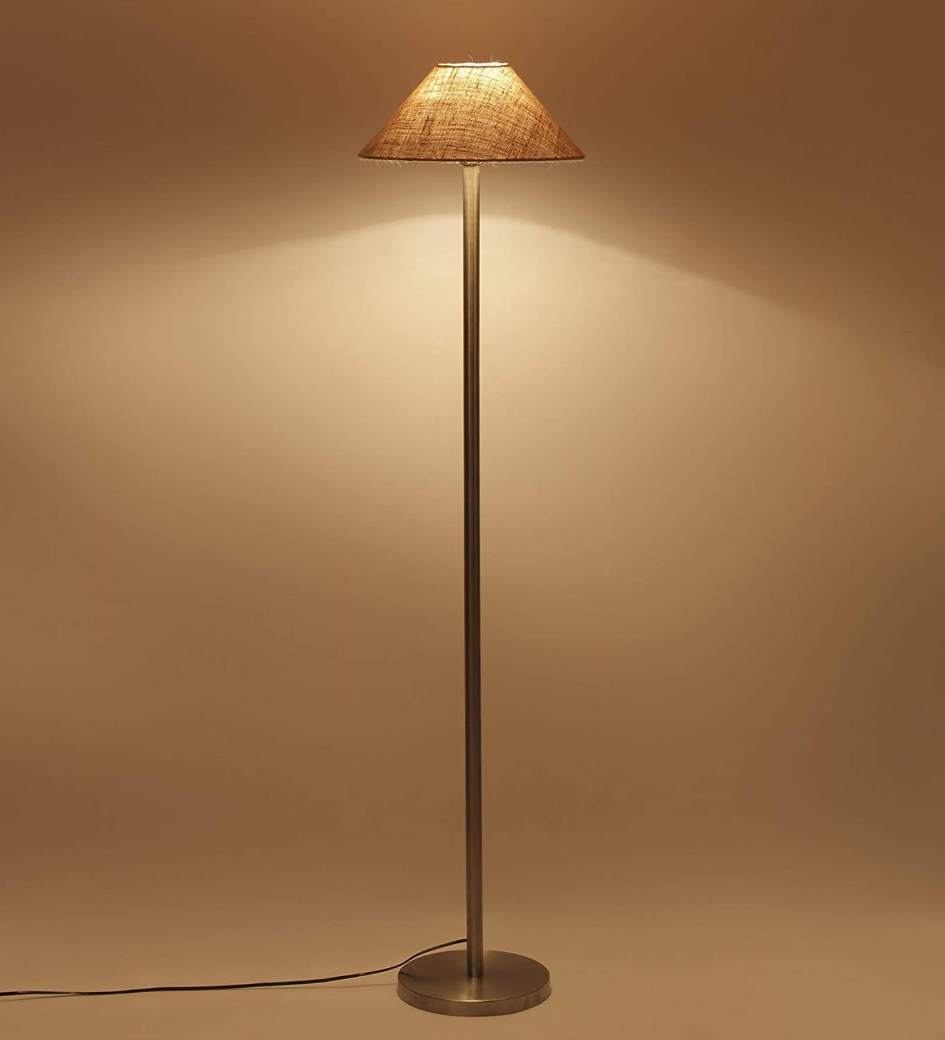 Beige Jute Designer Steel Floor Lamp for Home Decor (13" Beige, Medium)