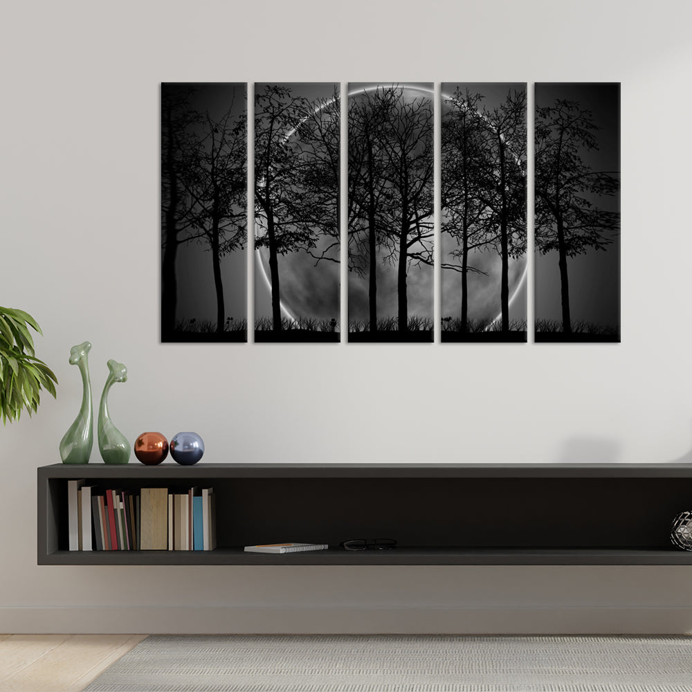 Black Forest  Canvas Wall Painting - With 5 Panel
