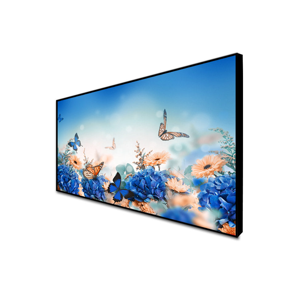 Blue Butterfly With Flower Floating Frame Canvas Wall Painting