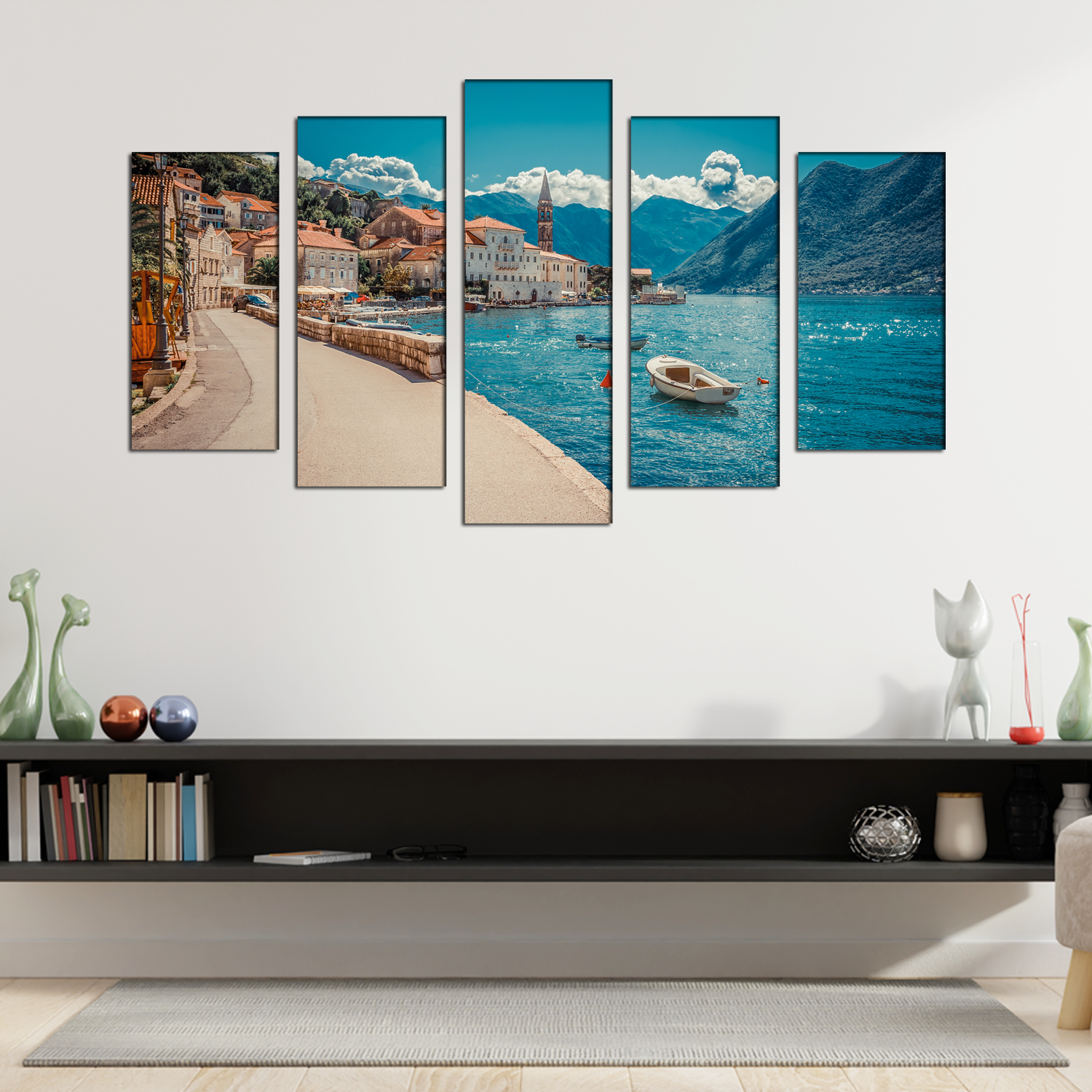 Boats in Sunny Day Canvas Wall Painting- With 5 Frames