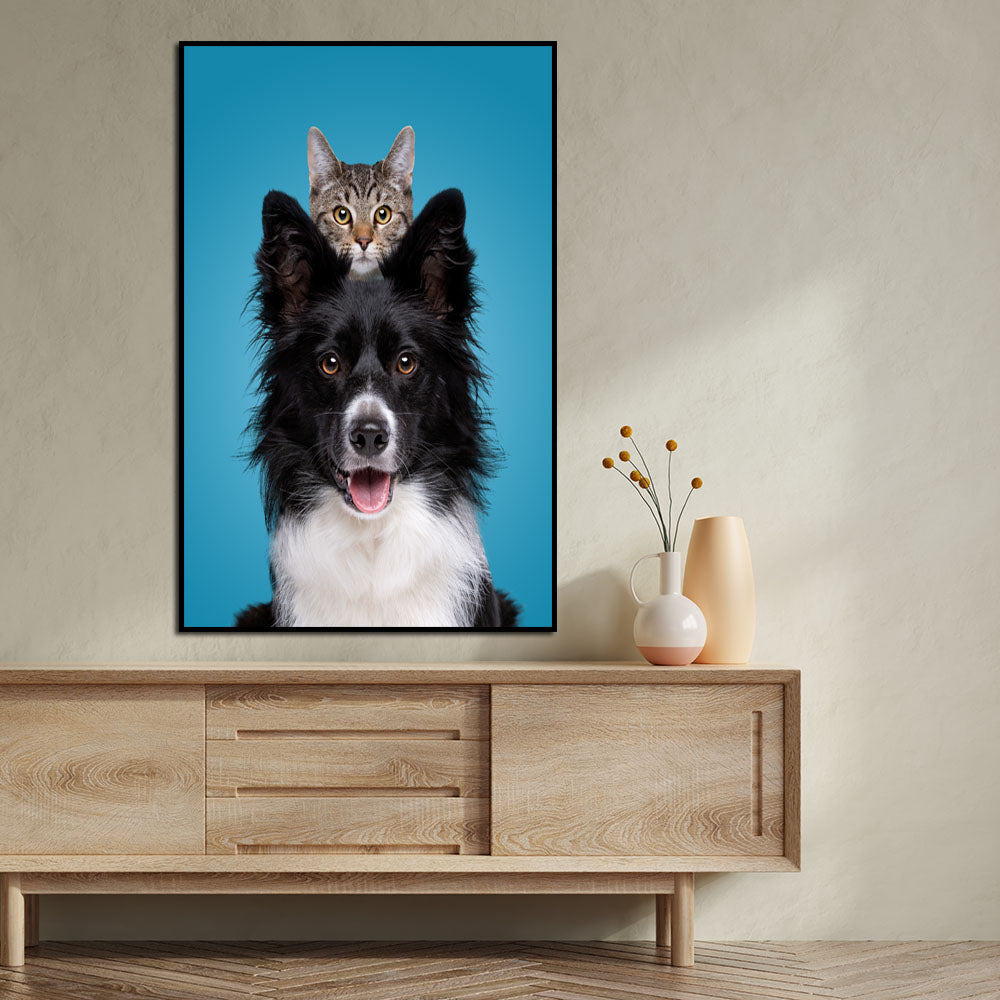 Dog With A Hiding Cat Floating Frame Canvas Wall Painting