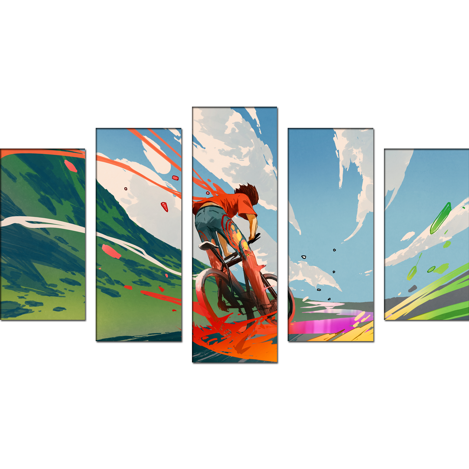 Boy Riding A Bicycle With Energy Canvas Wall Painting- With 5 Frames