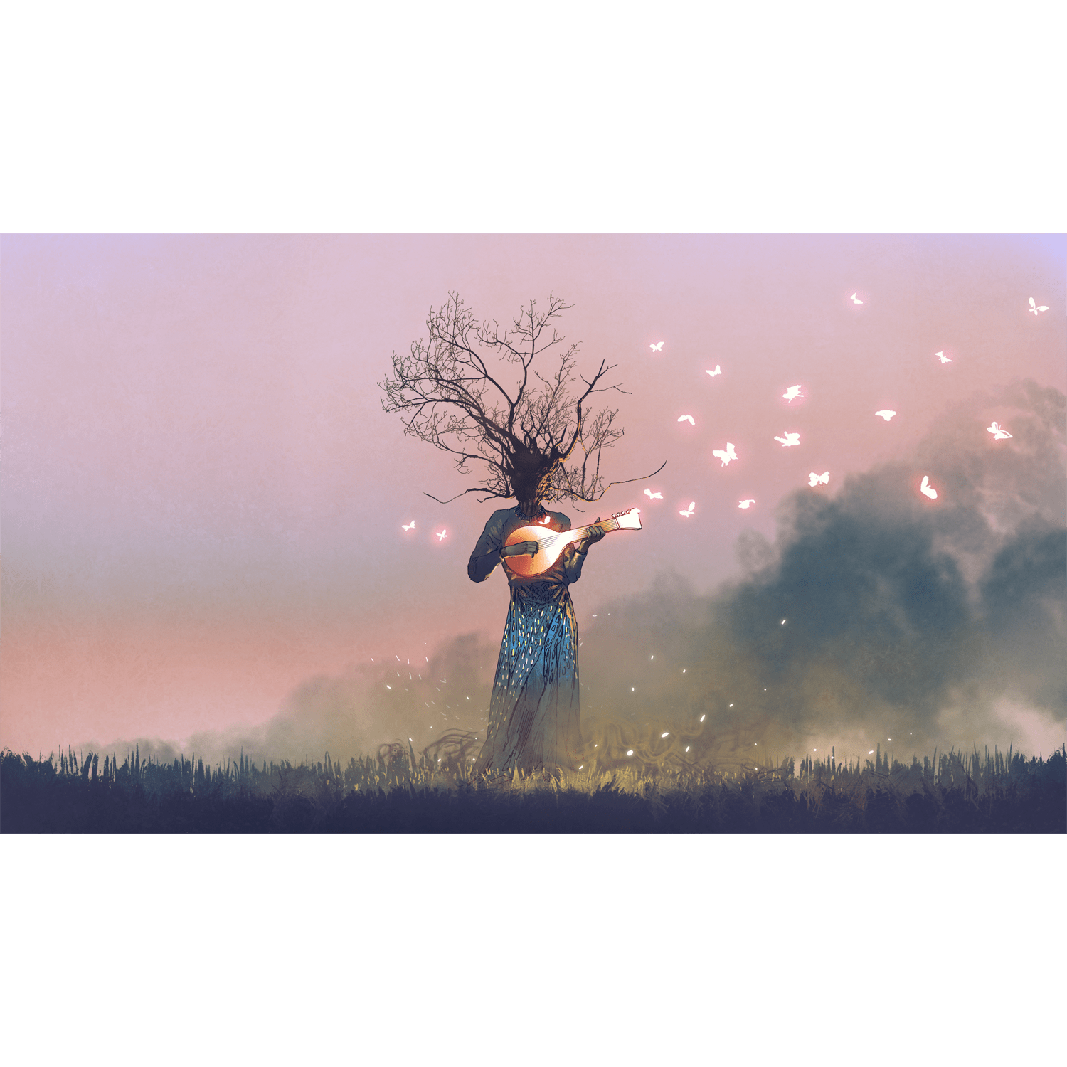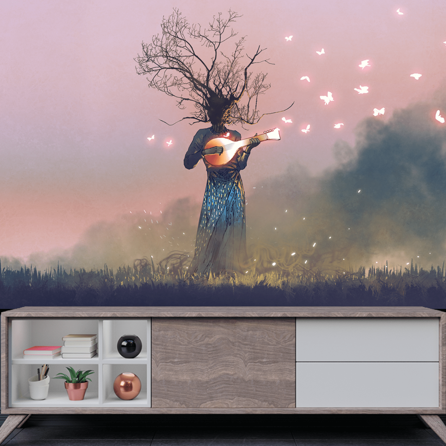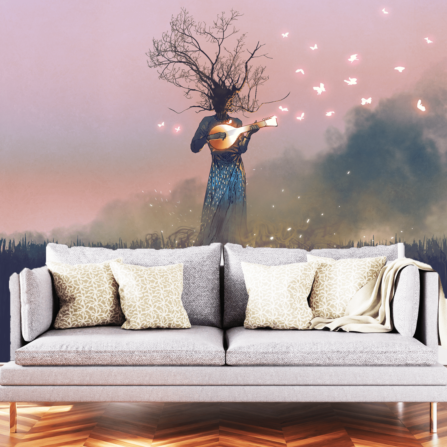 Tree Playing Music Aesthetic Digitally Printed Wallpaper