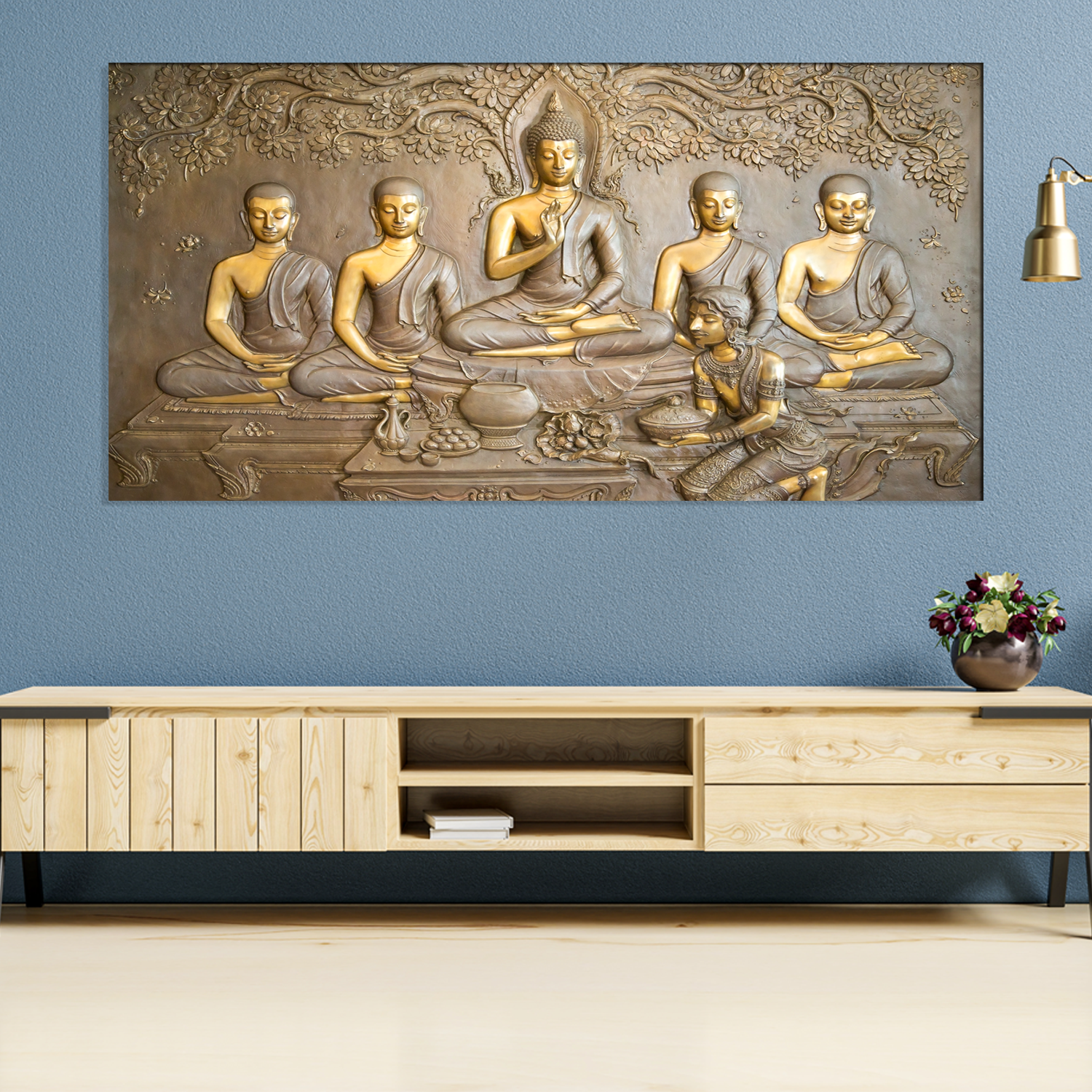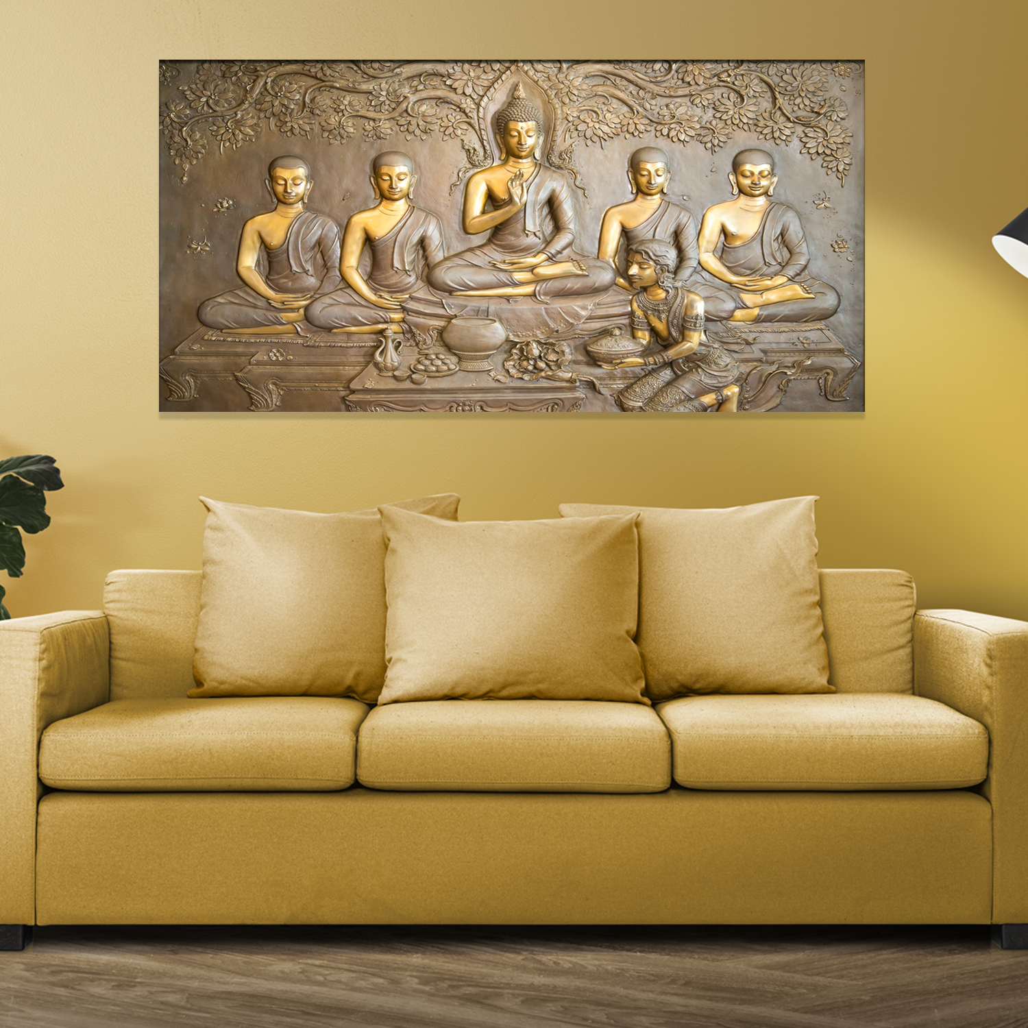 Meditating Buddha wall painting is a symbol of peace & prosperity. Fall in love with this beautiful and designer Buddha wall art as a part of your home decor. Available in two canvas colors, it is a perfect living room painting that can completely change the look of your home. It is mounted on a strong and robust wooden frame which is made of American Pine thereby making it resistant to bending at corners due to the constant pressure of hanging on the wall. These canvas wall art are printed in HD quality and also use Eco-friendly inks that leave no residue or fumes in the environment around where it is put.