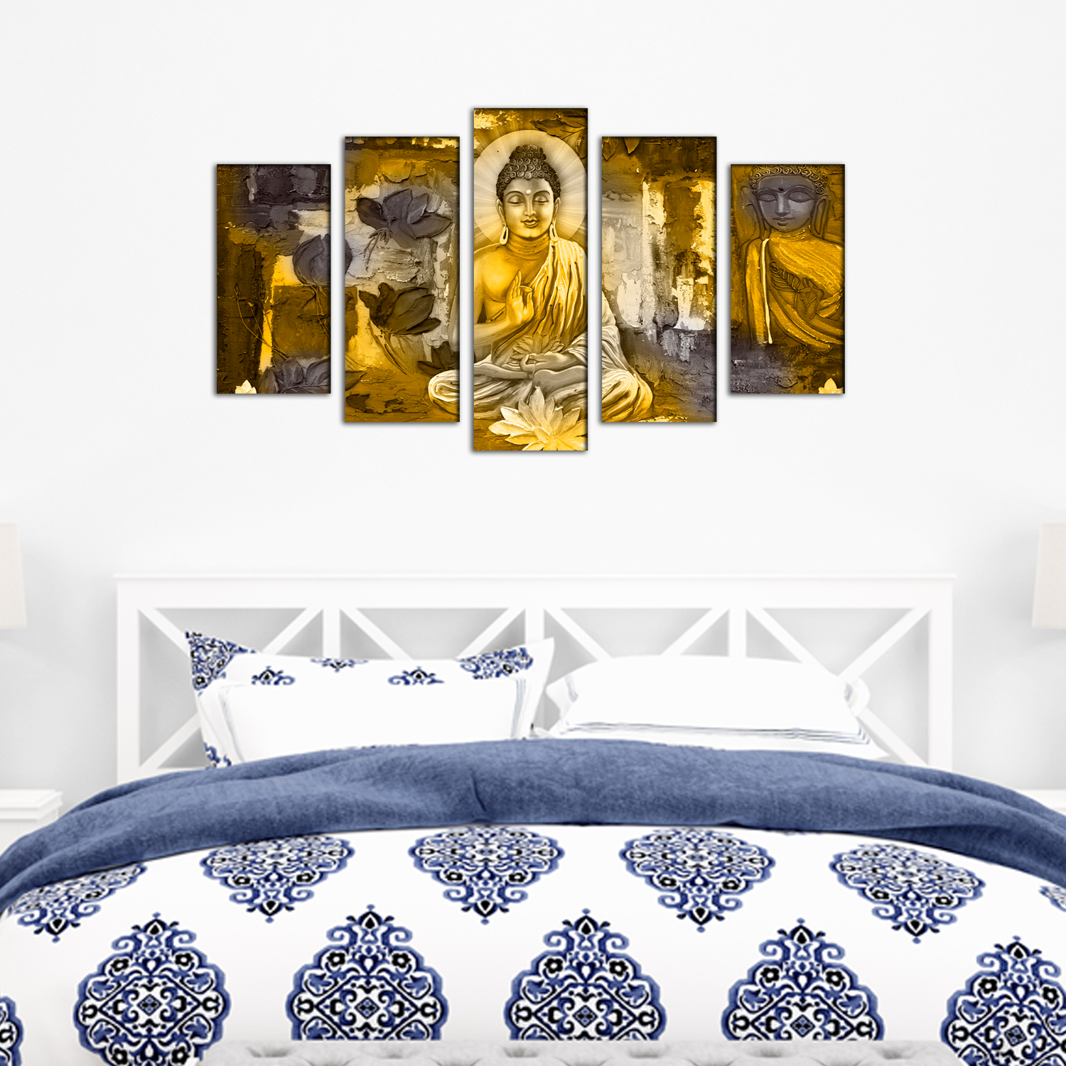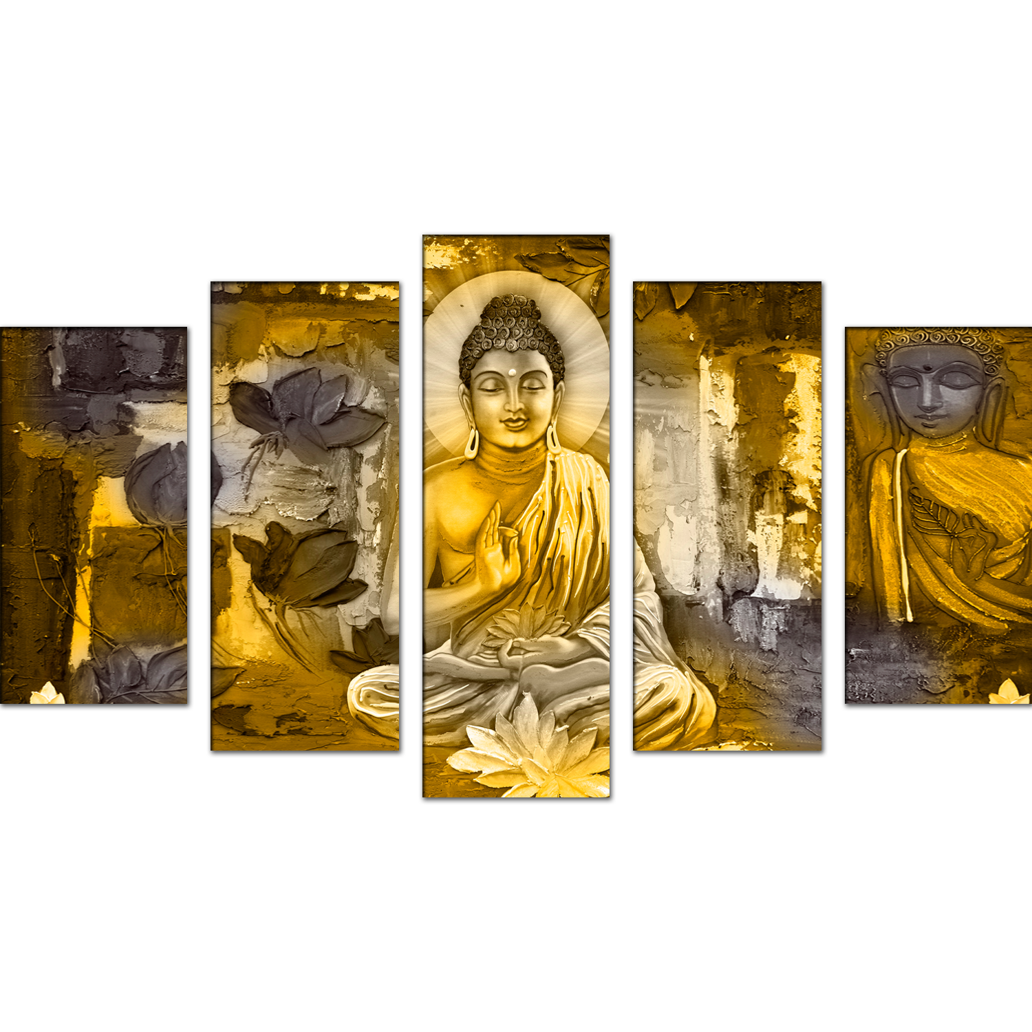 Golden Buddha Abstract Canvas Wall Painting- With 5 Frames