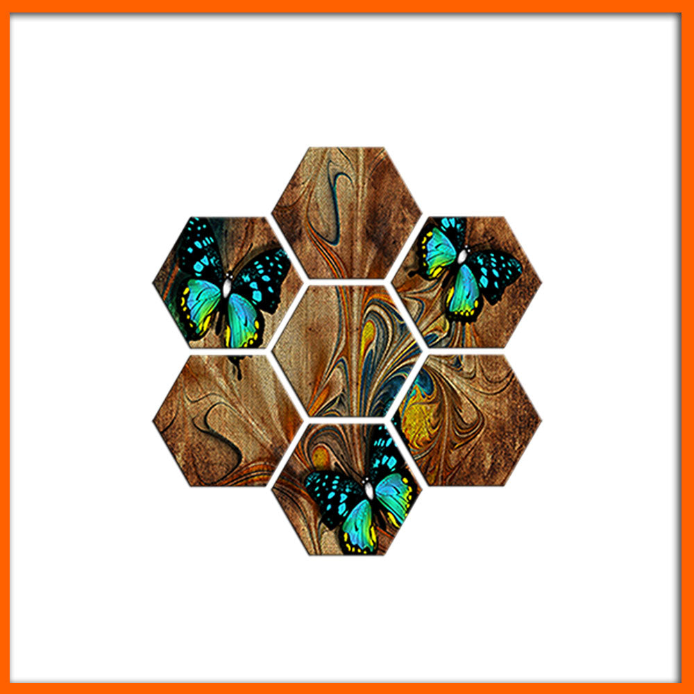 Butterfly Abstract Hexagonal Canvas Wall Painting - 7pcs